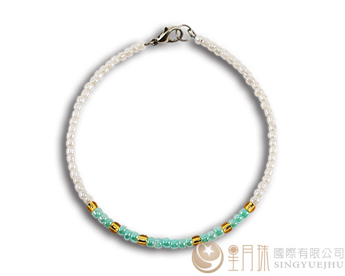 DIY日本珠鋼圈手鍊材料包-白綠金(A001) →