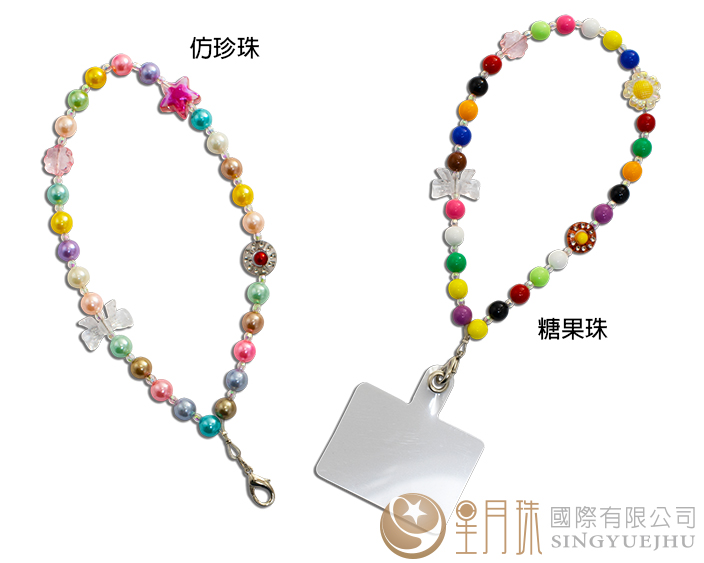 內容物: 彩色說明書、(仿珍珠、糖果珠)擇1 、鐵圈、龍蝦扣、鋼絲線、檔珠