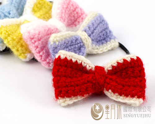 毛線編織-DIY手鉤蝴蝶結髮飾材料包-2個入-黃(C0049)