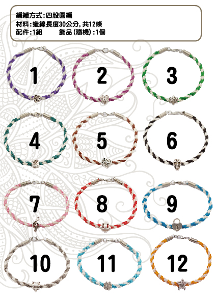 蠶絲蠟線DIY編織手環材料包-12(A006)