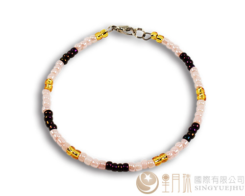 DIY日本珠鋼圈手鍊材料包-粉金黑(A001) →