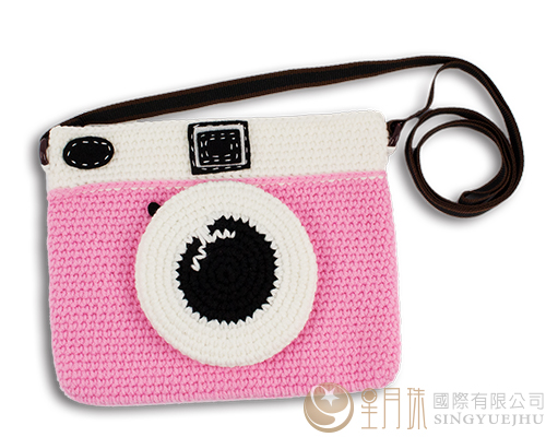 手鉤毛線-可愛相機側背包-粉紅(C0041)