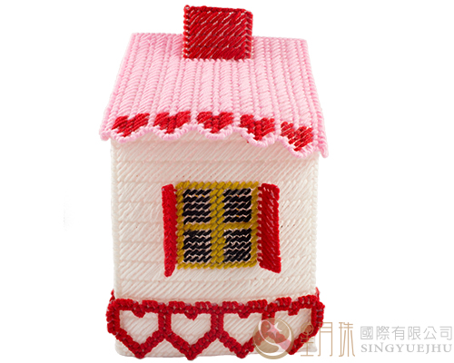台灣製-毛線立體繡恬靜小屋面紙盒-紅色(K003)