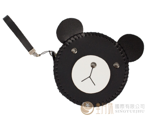 合成皮呆呆熊零錢包-黑白(B007)