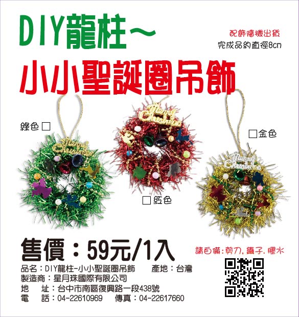 內容物: 彩色說明圖/塑膠環/聖誕鐘/龍柱/珠鍊/飾品/金蔥線