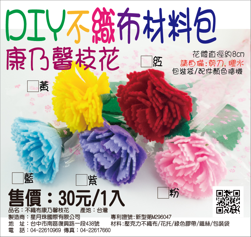 DIY不織布康乃馨枝花料包(D0028)