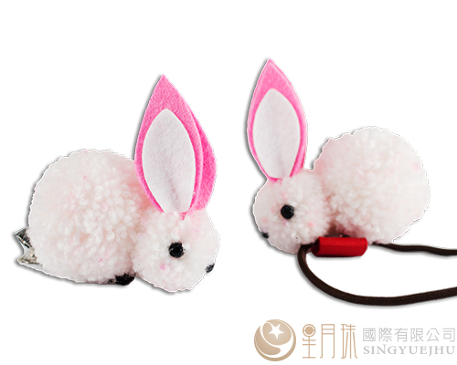 DIY毛線球兔兔髮飾材料包-白+粉(C0057)